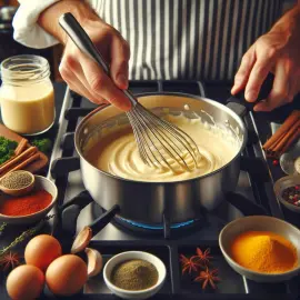 - Add the flour: Gradually sprinkle the flour into the melted butter, stirring constantly to avoid lumps. Continue cooking the mixture of flour and butter over medium heat until it becomes golden and develops a pleasant aroma.
